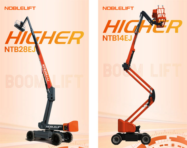 NAB14EJ(曲臂高空作业平台):零尾摆设计适配窄空间,交流驱动+双控系统(平稳节能),配自重下降系统、免维护电机/电池、应急动力系统。