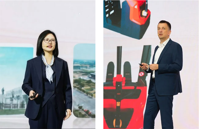 发布会伊始,诺力集团副总裁、诺力股份总经理毛英发表致辞。她对远道而来的合作伙伴致以感谢,并提出诺力将通过“研发创新+服务升级+产能赋能”三位一体模式提升核心竞争力,通过完善本地化服务网络,构建覆盖亚洲的物流服务新生态,为区域市场战略升级提供坚实支撑。